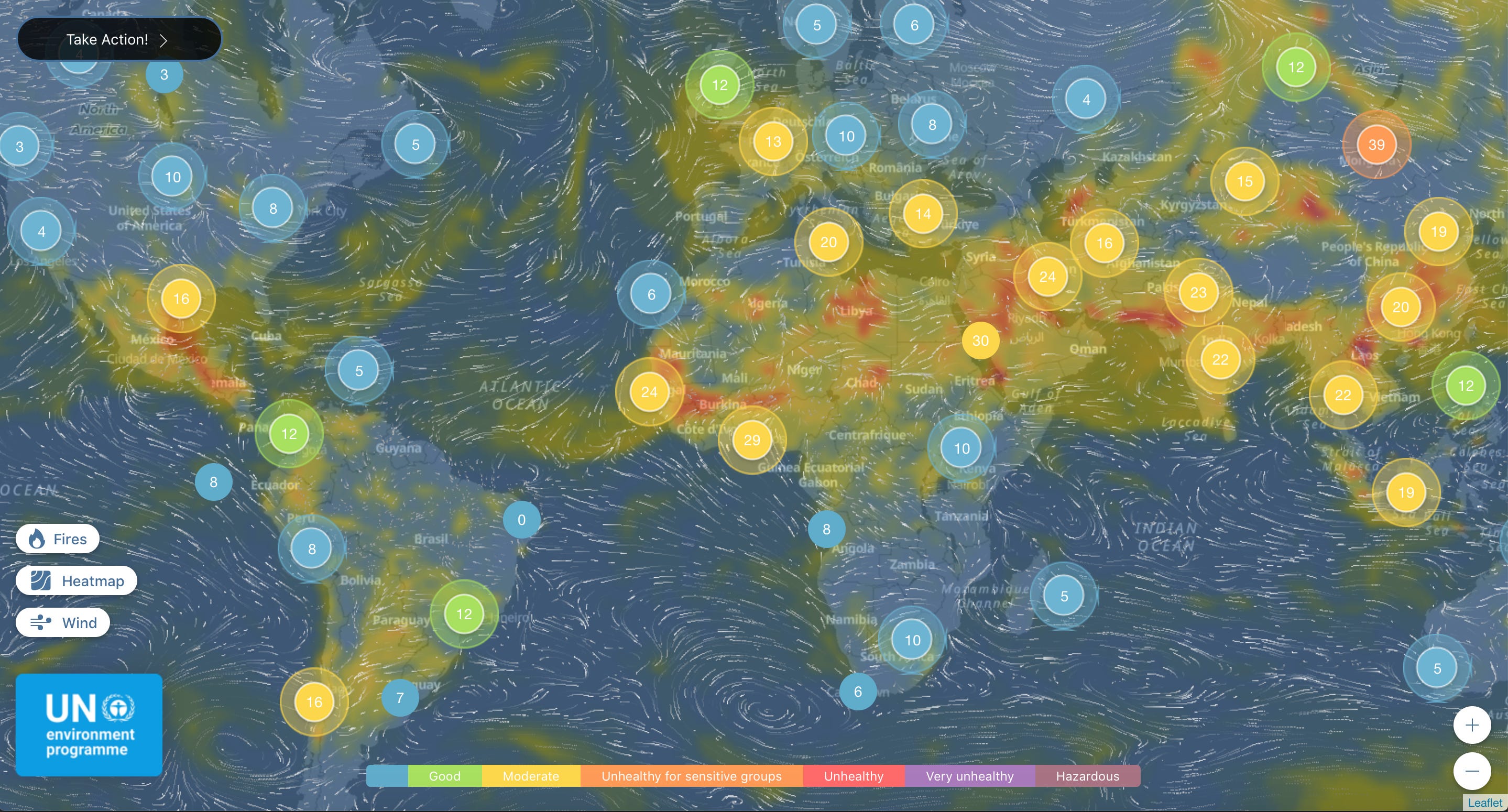 IQAir offers an interactive map (IQAir):
