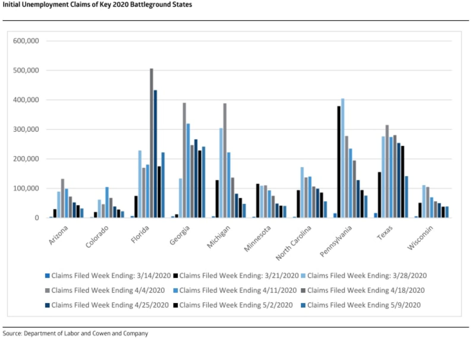 Workers filed another 2.4 million unemployment claims last week, a slight drop-off in the wave of historically high weekly filings since the economic fallout. Over the span of nine weeks, more than 38 million Americans have filed unemployment claims. (Wall Street Journal, Washington Post)