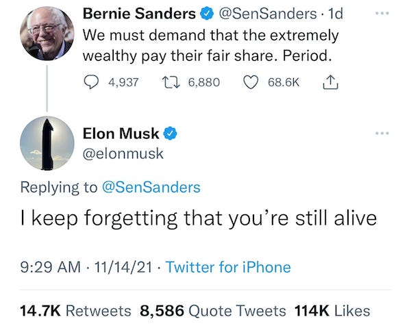 Elon Musk spars with Bernie Sanders, offers to sell more Tesla stock. (Reuters)