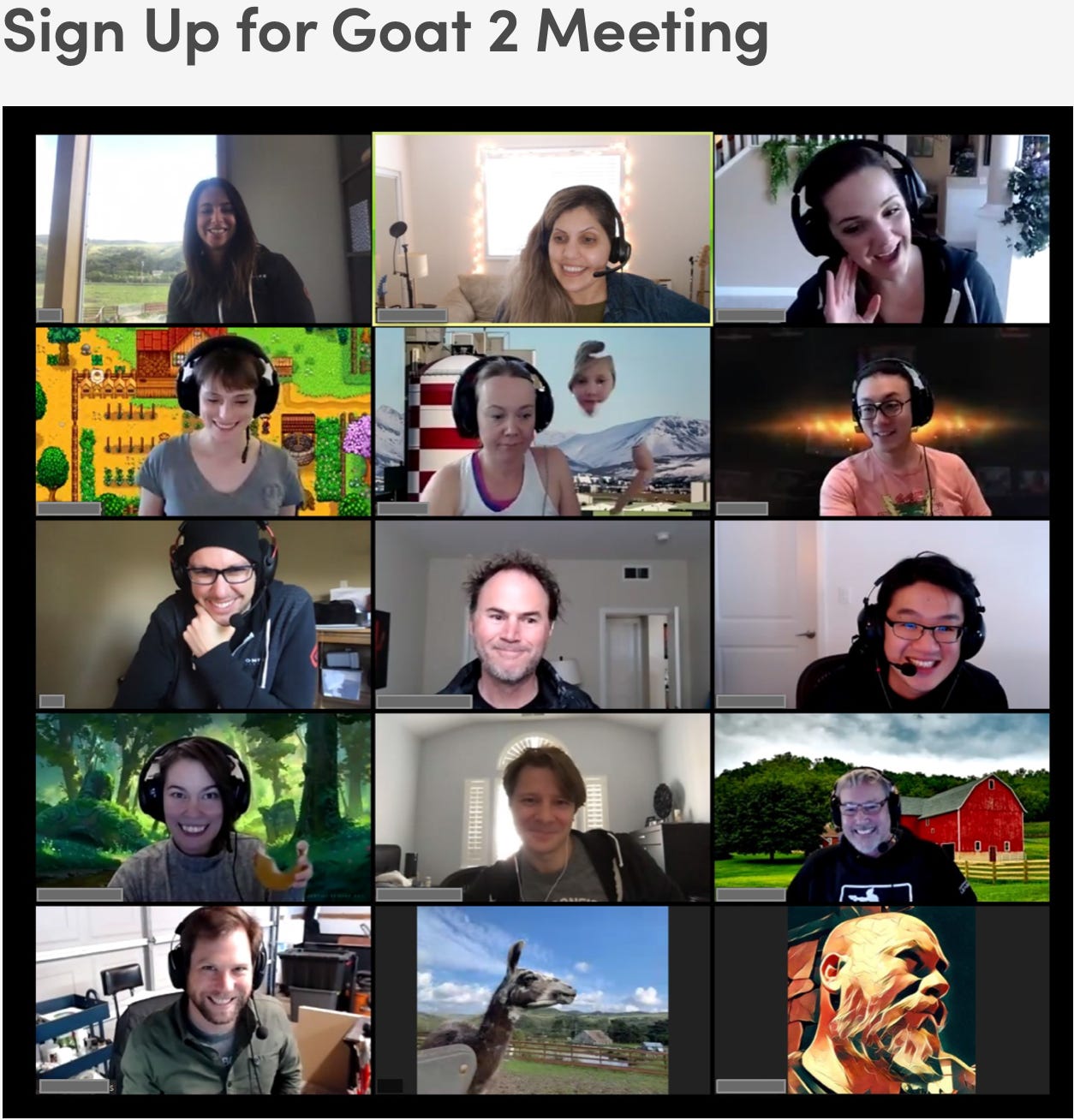 For your next video call, invite a farm animal. After weeks of working from home, your video calls are probably starting to feel a little monotonous. But what if there was fresh, nonhuman face in your virtual meeting? Maybe a cow, a llama, a ... goat?