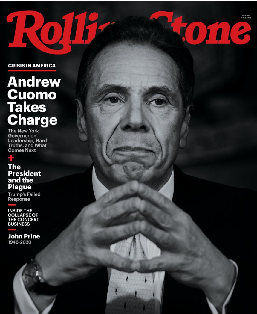 Andrew Cuomo: As a communicator, in particular, Cuomo has risen to the occasion, proving especially adept at walking viewers through the nuances of the daily barrage of bad news, offering realistic glimmers of hope but never magical thinking. He’s shared personal anecdotes about his family, including his younger brother, Chris, the CNN anchor, who has tested positive for the coronavirus, and displayed a surprising degree of warmth and humor for someone who acknowledged in his own memoir that the Albany media referred to him, alternately, as the Prince of Darkness and Darth Vader. (Rolling Stone)