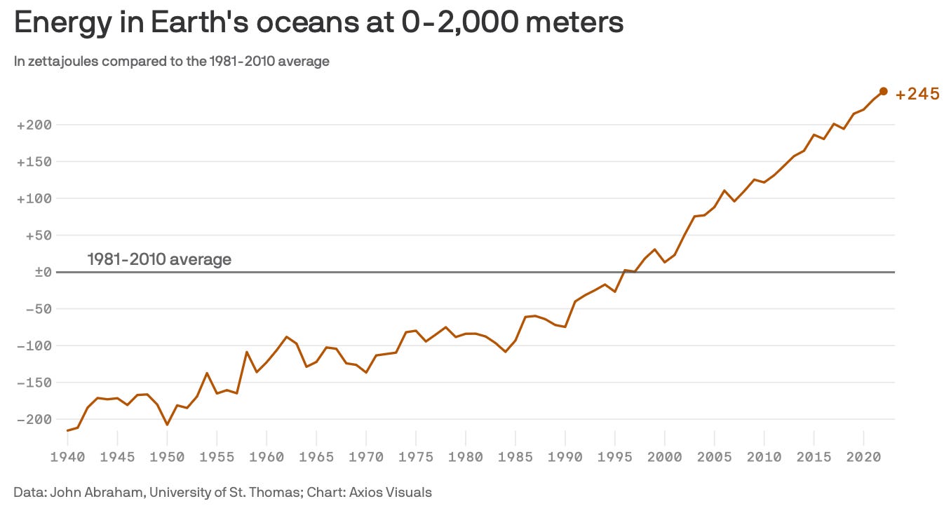 Ocean heat content hits record high, a sign of global warming. (Axios)