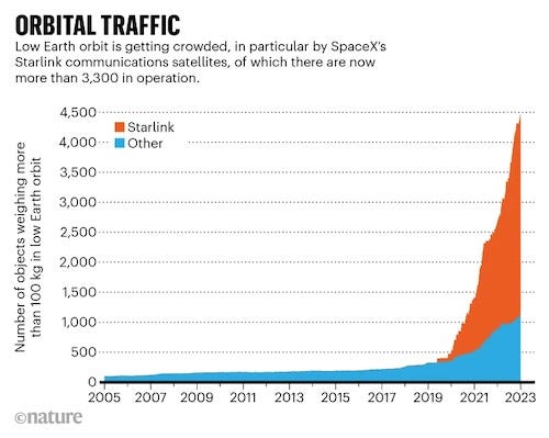 2022 was a record year for space launches: In 2022, 180 rocket launches successfully reached orbit — the most ever. SpaceX launched 61 of its Falcon rockets: one every six days, on average. China had 62 launches — the second-highest number after the United States. This year could see more broken records: SpaceX hopes to conduct 100 launches. (Nature)