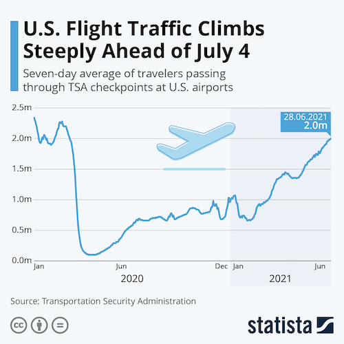 U.S. flight traffic climbs steeply ahead of July 4. (Statista)