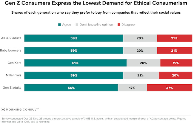 Majorities in every generation favor ethical consumerism, but Gen Z is the least enthused.