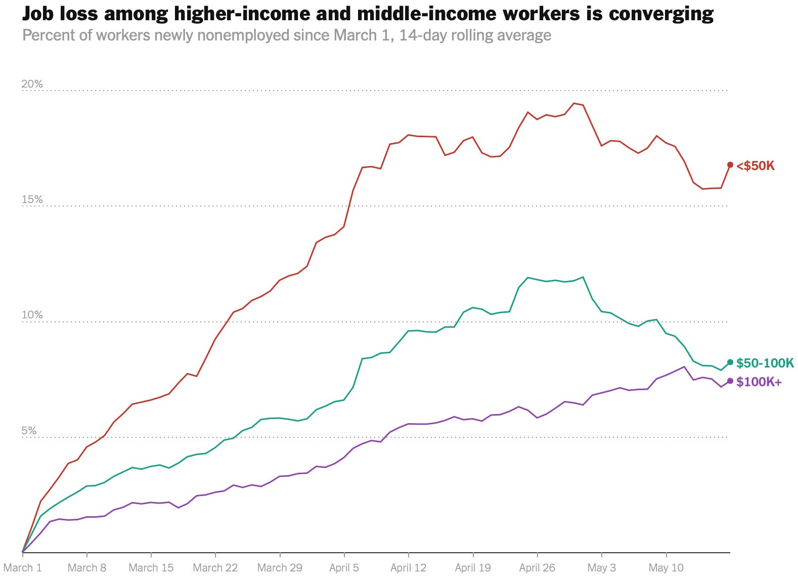 The jobless rate rose in all 50 states in April, with Nevada highest at 28.2% and Connecticut lowest at 7.9%. Treasury Secretary Mnuchin said there is a "strong likelihood" that another relief bill will be needed as states reopen and the economy struggles to stabilize. (Wall Street Journal, The Hill)