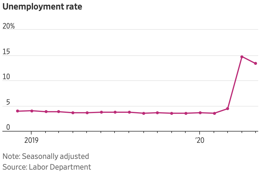 Employment stunningly rose by 2.5 million in May and the jobless rate declined to 13.3%, far better than economists had been expecting and indicated that an economic turnaround could be close at hand. (CNBC, Wall Street Journal)